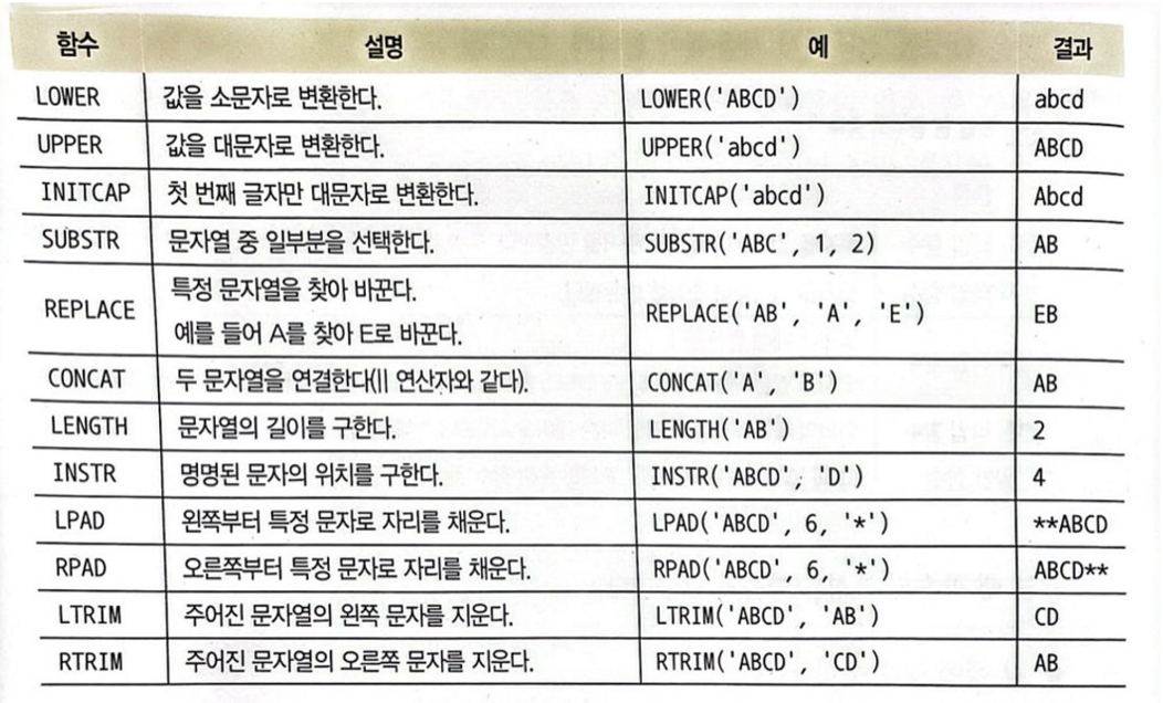 - 데이터 값을 계산하거나 조작 (단일 행 함수)