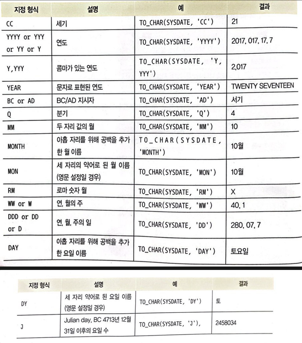 | 일반 함수 | 그 외 NVL, DECODE, CASE, WHEN, 순위함수 등 |