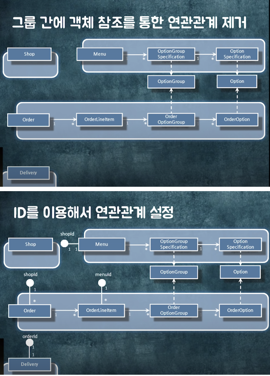 - 라이프사이클만 같으면 연관관계, 그 외에는 id값만 저장 -> id를 통해 연관관계 설정