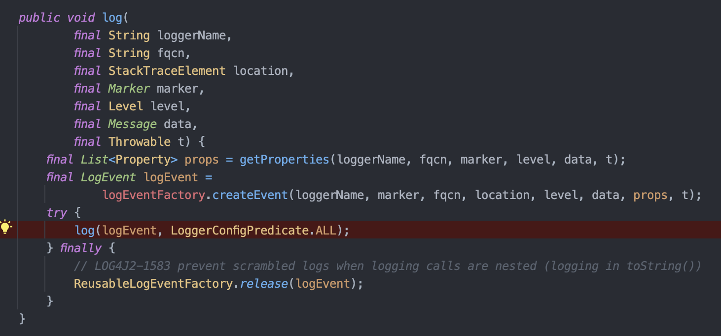 1. 먼저 Log4jLogger 가 AbstractLogger 의 logIfEnabled() 메서드를 호출합니다.