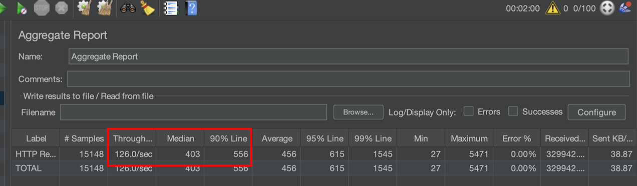 서버 스펙이 증가한 만큼 기존 부하 vUser 50에서 vUser 100으로 늘린 후 진행하였습니다.