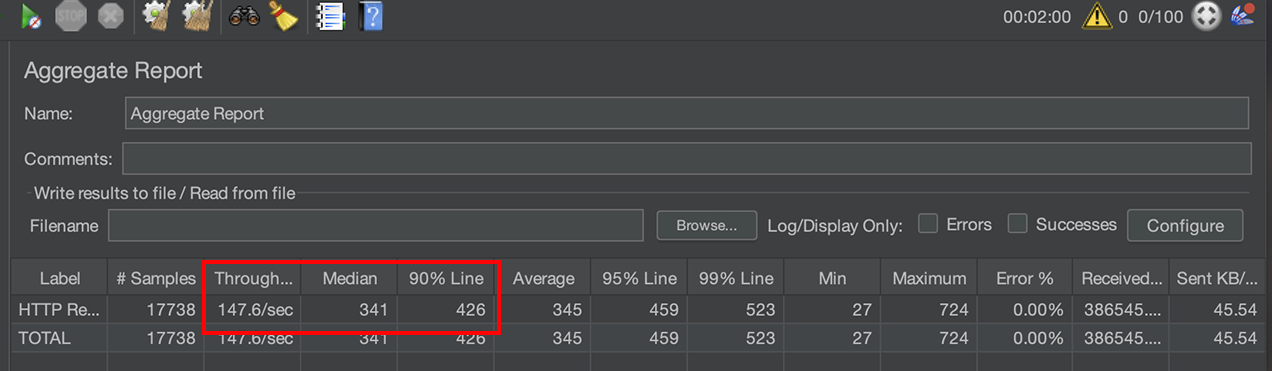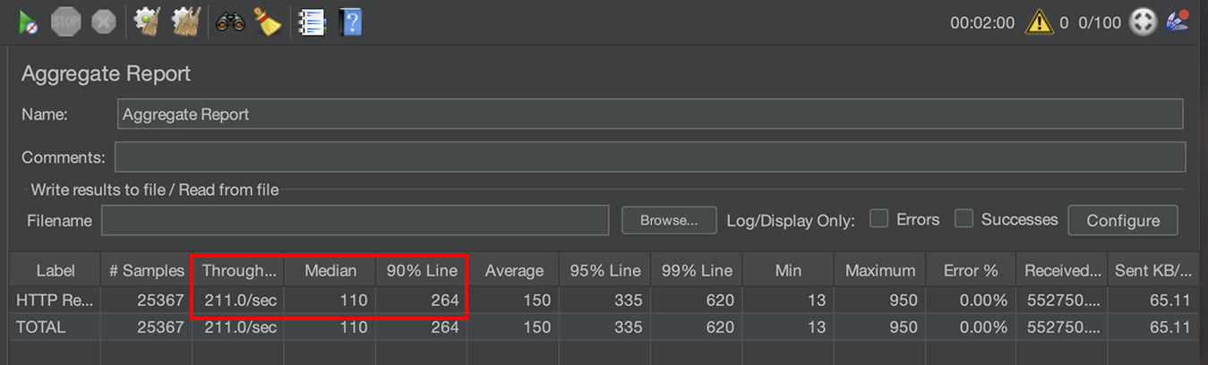 그래서 기존의 로깅 로직을 전부 제외하고, 부하 테스트를 진행해봤습니다.